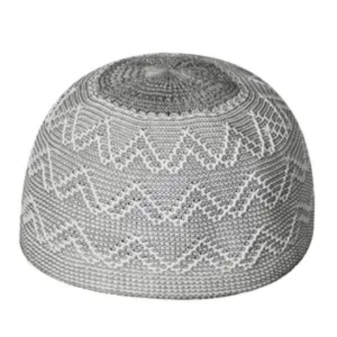- Grey + Cream + Black (Tall Pattern Kufi) – traditional geometric look